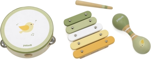 El set musical infantil PolarB está diseñado para aportar diversión y aprendizaje a la vida de tu hijo. Cada instrumento ha sido cuidadosamente fabricado en madera lacada y pintado con colores no tóxicos en tonos pastel que agradan a la vista.