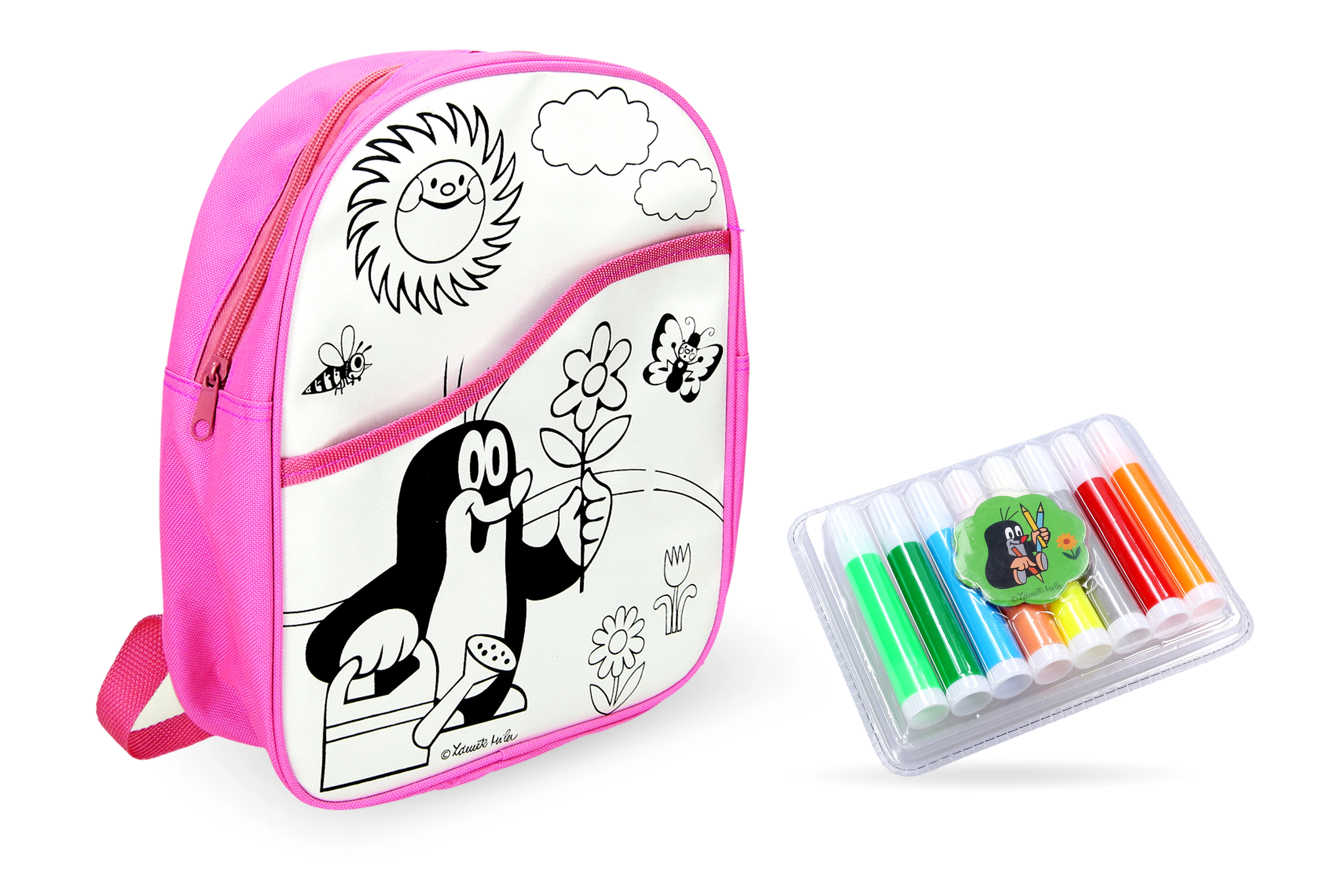 La mochila para colorear Rosa con Topo es el regalo ideal para niños a partir de 3 años. La mochila se suministra con un set de 8 rotuladores de colores que permiten a los niños crear sus propios diseños y desarrollar su creatividad.