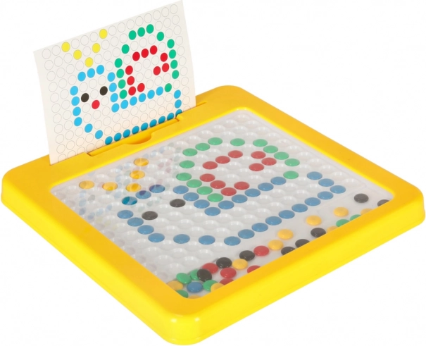 Potencia la imaginación infantil con un creativo juguete Montessori: un mosaico magnético en un práctico marco amarillo de 26 × 26 cm. Con un lápiz magnético, los niños desplazan cuentas de colores y crean imágenes según plantillas o su propia fantasía. El juguete desarrolla la motricidad fina, la coordinación mano-ojo y enseña paciencia y concentración. A partir de 3 años.