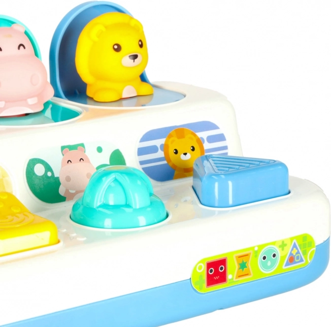Divertido juego Montessori con cuatro animalitos emergentes que enseña a los niños la causa y efecto, entrena la motricidad fina y desarrolla la percepción sensorial. Pulsa, desliza o gira los controles de colores y libera al cocodrilo, pingüino, hipopótamo y león ocultos. Excelente juguete educativo para niños a partir de 18 meses.