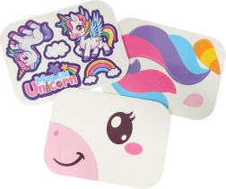 El set se guarda en un resistente maletín de plástico con placa perforada para atornillar. Gracias a su equipamiento abundante y a las pegatinas con motivos de unicornios, el juego es divertido tanto para un niño como para grupos.