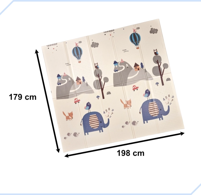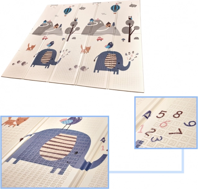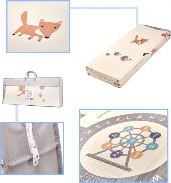 El diseño estimula la imaginación y el aprendizaje: por un lado, adorables animalitos y naturaleza; por el otro, calles e intersecciones para horas de diversión con cochecitos. La alfombra se pliega rápidamente y se transporta con facilidad en la bolsa con asa incluida, no ocupa espacio y su mantenimiento lleva solo unos segundos: basta con pasar un paño húmedo.
