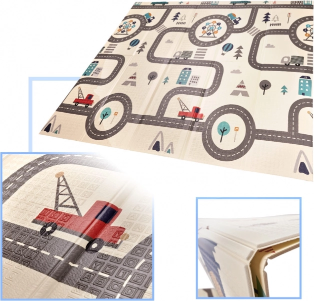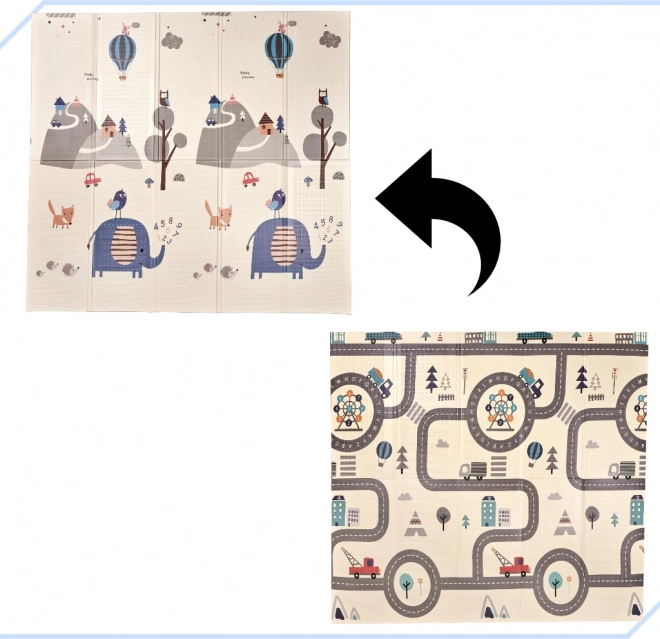 La práctica alfombra infantil de juego de espuma XPE es de doble cara, plegable y ofrece un espacio amplio y suave para jugar y dar los primeros pasos. Un lado muestra animalitos del bosque y colinas, el otro carreteras y ciudad para conducir cochecitos. Se limpia fácilmente, aísla del frío y gracias a su grosor de 1 cm aumenta la comodidad y la seguridad.