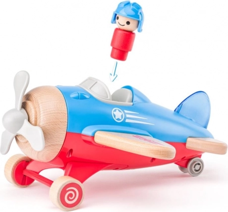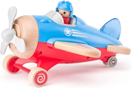 El avión está equipado con una hélice giratoria y una pequeña figura de piloto, lo que fomenta el juego interactivo.