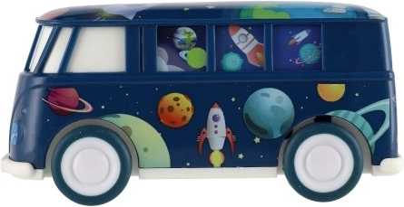 El autobús está diseñado con colores vivos y motivos espaciales que cautivarán a cualquier niño.