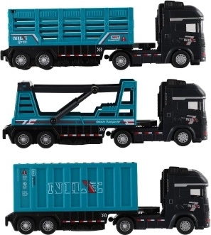 Amplíe la flota infantil con un camión de plástico con inercia de alta calidad, que encantará por sus detalles trabajados y conducción fluida. El modelo de 26 cm está disponible en varias versiones —con contenedor o como transportador— y complementa a la perfección cualquier colección de cochecitos.