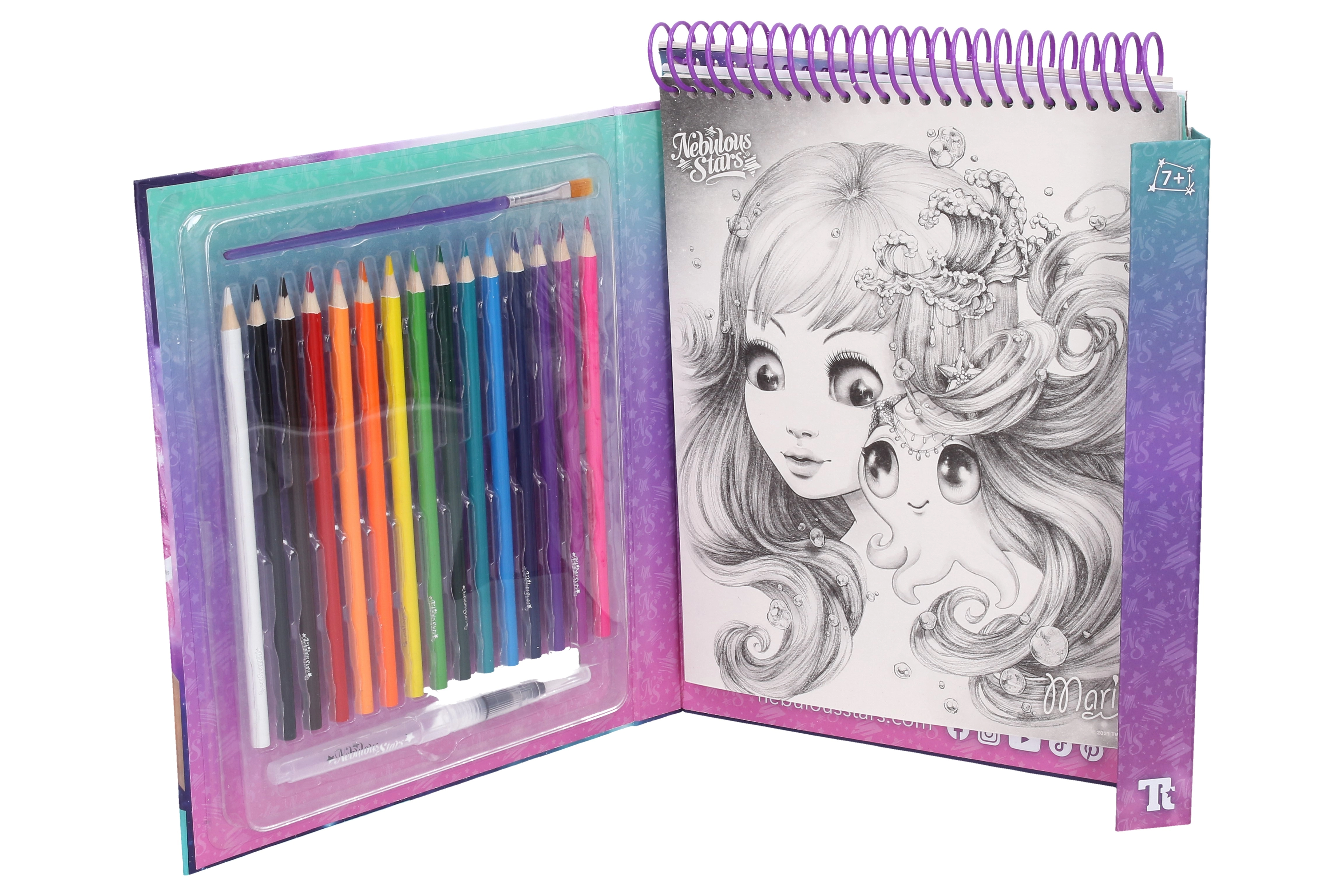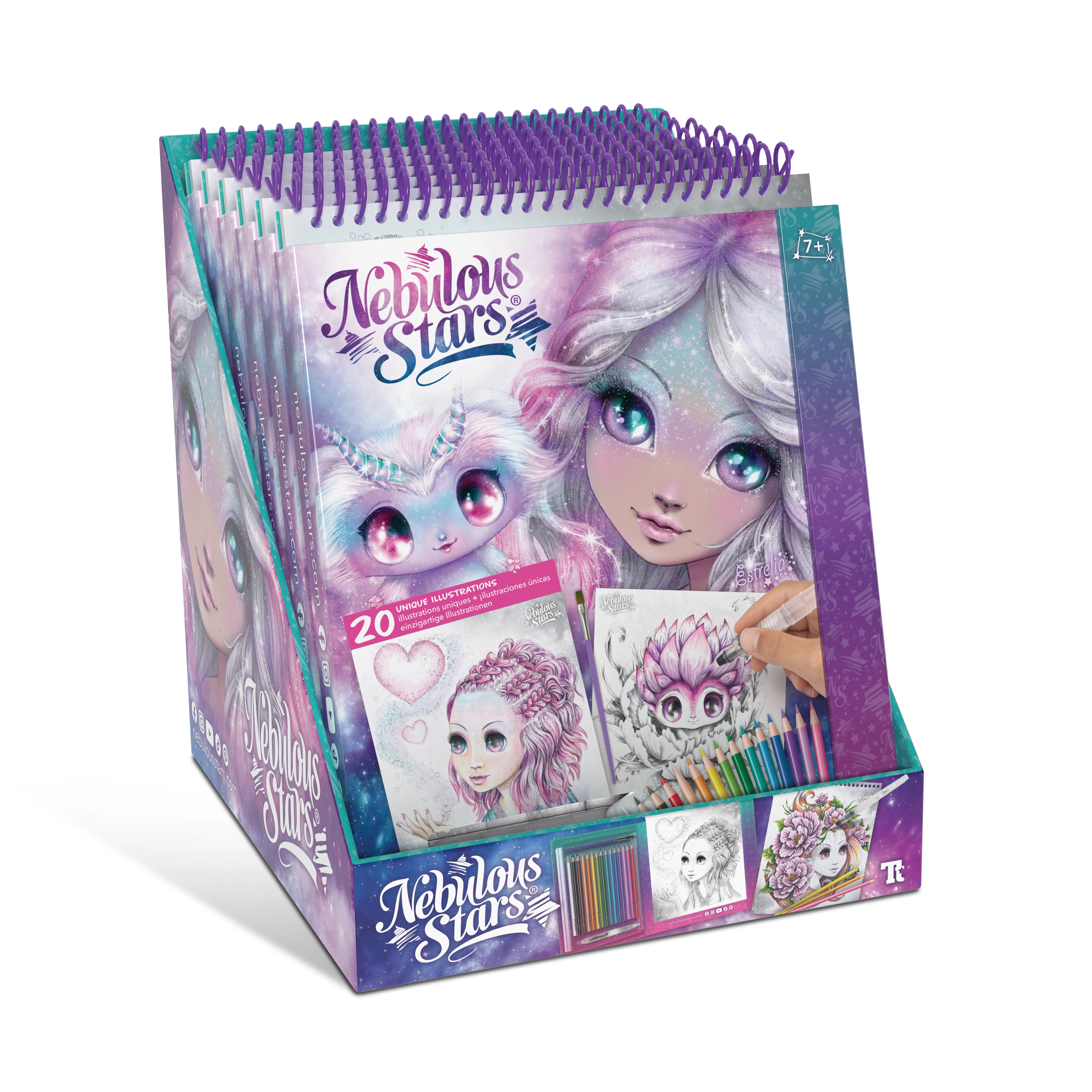 Disfruta del mundo de Nebulous Stars con este exclusivo libro para colorear, que incluye 20 ilustraciones dibujadas a mano y 15 rotuladores acuarelables. ¡Perfecto para niños creativos!