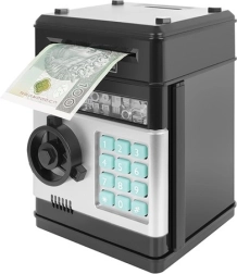 La hucha electrónica KRUZZEL, con diseño de mini caja fuerte, es una excelente compañera para los pequeños ahorradores. Permite introducir fácilmente tanto billetes como monedas, y el acceso a los ahorros está protegido por un PIN propio de cuatro dígitos. Un recordatorio práctico tras 20 segundos avisa de que la puerta está abierta.