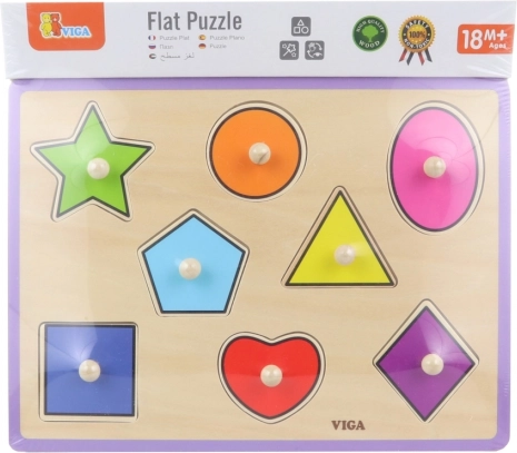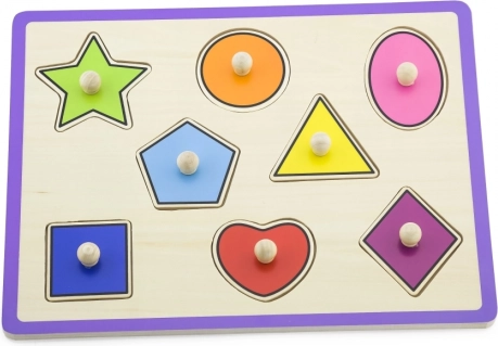 Un juguete divertido e interactivo que incluye 8 piezas de colores en diferentes formas, cada una con un asa/pivote que facilita la manipulación por manos pequeñas. El juguete está fabricado con madera de calidad, lo que garantiza su larga vida útil. Los materiales y pinturas utilizados son ecológicos y completamente seguros para los niños.