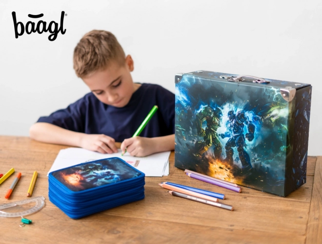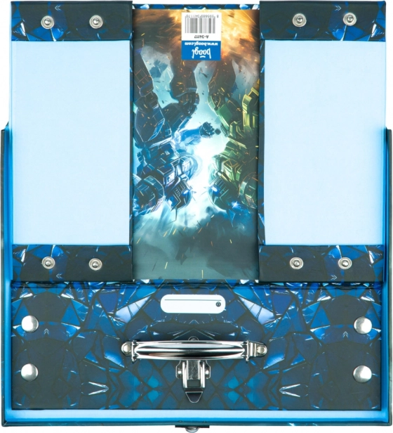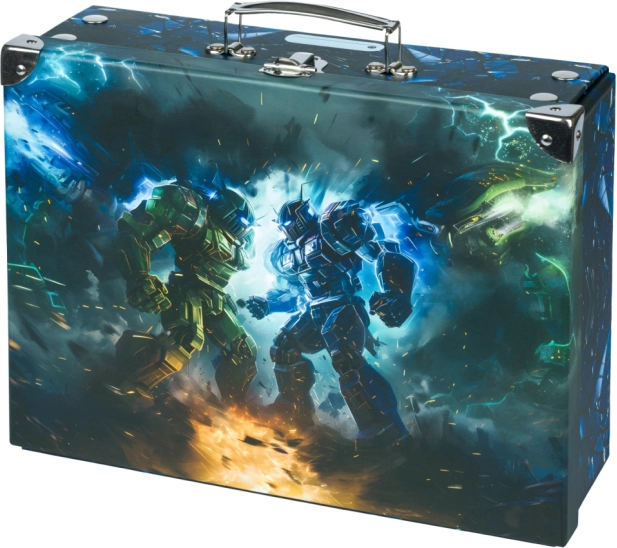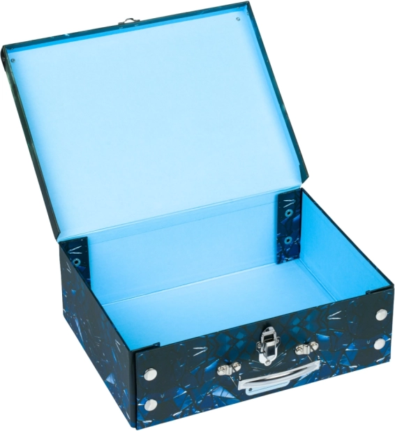 Perfecto para escolares, este maletín plegable está hecho de papel laminado resistente con fijaciones metálicas para una larga durabilidad. Los prácticos broches de presión permiten un montaje y desmontaje sencillos, asegurando que el maletín se mantenga siempre en óptimas condiciones. El asa metálica y la hebilla clásica ofrecen un transporte cómodo y un cierre seguro.