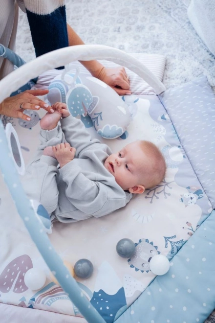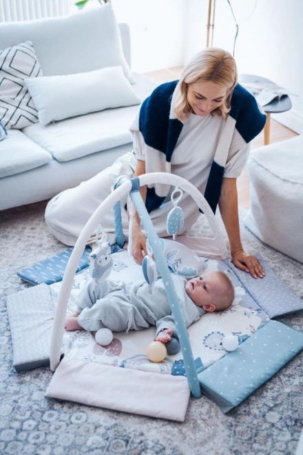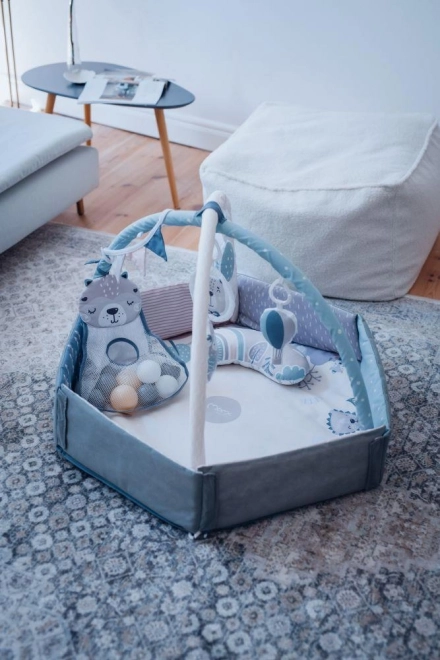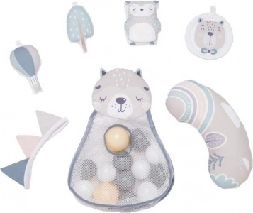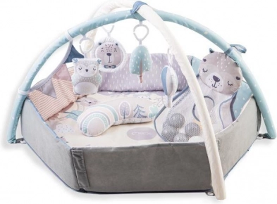 Esta manta de juego está fabricada con material resistente con propiedades termoaislantes y ofrece comodidad y seguridad. El uso de suaves colores pastel, además, aporta tranquilidad y favorece el desarrollo visual del niño. Incluye juguetes sensoriales que estimulan los sentidos del pequeño y aportan alegría al juego.