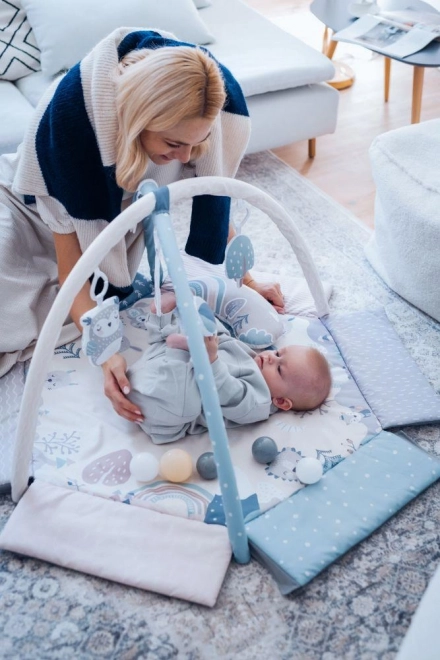 MoMi Pastel combina tres funciones en una: alfombrilla educativa, parque y piscina de bolas seca, lo que ofrece múltiples formas de entretenimiento.