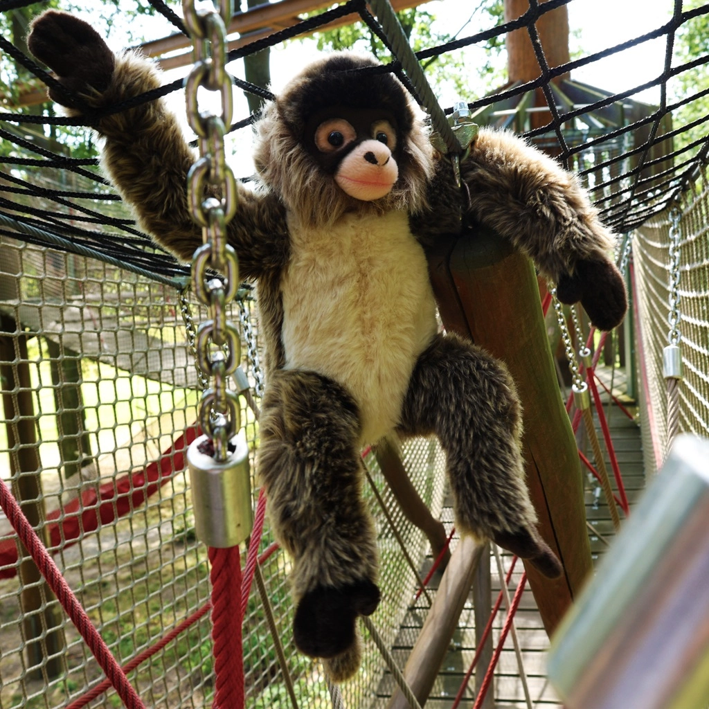 El mono de peluche está fabricado con atención al detalle, reproduciendo el aspecto de un mono real.