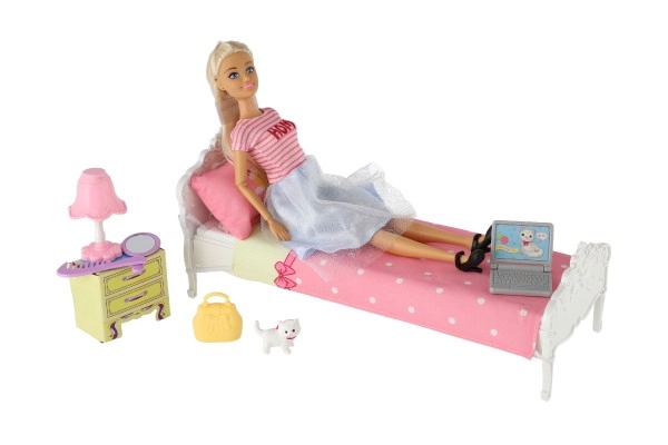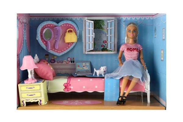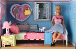 El set incluye camita, tocador, lámpara y mascotas para un juego completo.
