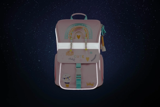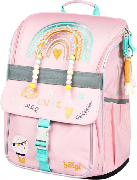 La mochila BAAGL Zippy Arcoíris rosa está diseñada para los pequeños escolares desde 1.º curso. Ofrece espalda de forma ergonómica y correas de hombro, pectoral y de compresión lateral totalmente ajustables para una adaptación perfecta al cuerpo. Su construcción ligera pero firme mantiene la forma estable, el material impermeable protege los libros y la base rígida permite que se mantenga de pie por sí sola.