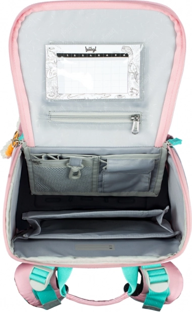 Gracias al nuevo sistema abatible, los niños acceden fácilmente al material directamente desde el pupitre. En el interior no falta un bolsillo transparente para el horario y un organizador inteligente con goma para distribuir el peso de manera uniforme. Los bolsillos laterales admiten una botella, y el bolsillo frontal aislado con hebilla es ideal para el almuerzo.