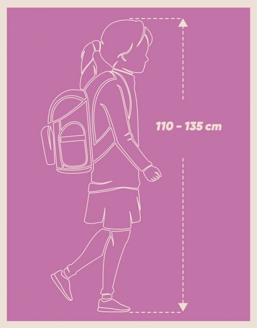 El sistema de espalda completamente ajustable permite regular con precisión las correas según la altura del niño. La espalda con forma ergonómica y la correa pectoral garantizan estabilidad y comodidad durante todo el día.