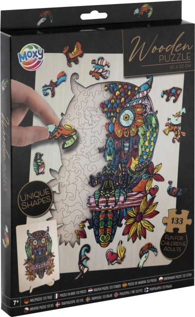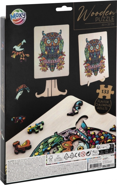 Rompecabezas de contorno de madera con motivo de búho es un juguete divertido para niños y adultos. Contiene 133 piezas de diferentes formas y una base con contornos para facilitar el montaje.