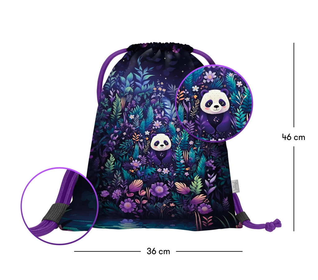 La distribución práctica con organizador interno y bolsillo transparente para el horario ayuda a repartir el peso de forma equilibrada. El bolsillo frontal aislado y los dos bolsillos laterales son ideales para el almuerzo y la botella de agua. El diseño estiloso con motivo de panda, los elementos reflectantes para una mejor visibilidad y la calidad comprobada convierten este set en una elección confiable para la escuela.