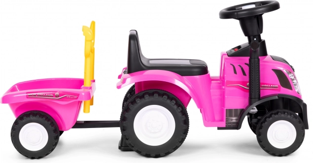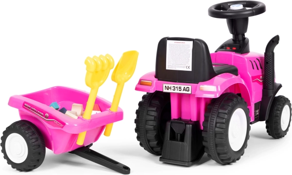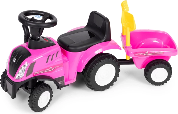 Elegante correpasillos tractor para niños con remolque desmontable que ofrece horas de diversión activa dentro y fuera de casa. Gracias a la licencia NEW HOLLAND, al volante interactivo con sonidos de claxon y arranque del motor y a la estructura estable y resistente, es ideal para pequeños granjeros a partir de 12 meses. Incluye rastrillo y pala, asiento cómodo con respaldo y tope antivuelco para máxima seguridad.