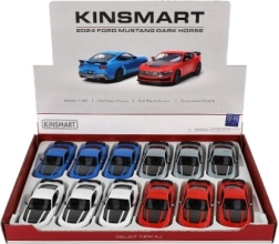 Descubre el modelo Kinsmart meticulosamente elaborado, inspirado en el icónico coche deportivo FORD MUSTANG Dark Horse. A escala 1:38, ofrece proporciones realistas, ruedas detalladas, alerones y pintura que destacan en cualquier colección o habitación infantil. Gracias a la combinación de metal y plástico, el modelo es robusto, resistente y a la vez ligero.