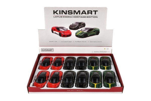 El modelo de coche Kinsmart LOTUS Emira a escala 1:38 ofrece un acabado realista con atención al detalle. La carrocería metálica combinada con piezas de plástico garantiza resistencia, mientras que el mecanismo de retroceso aporta diversión al conducir. Las puertas abatibles permiten ver el interior y potencian la experiencia auténtica.