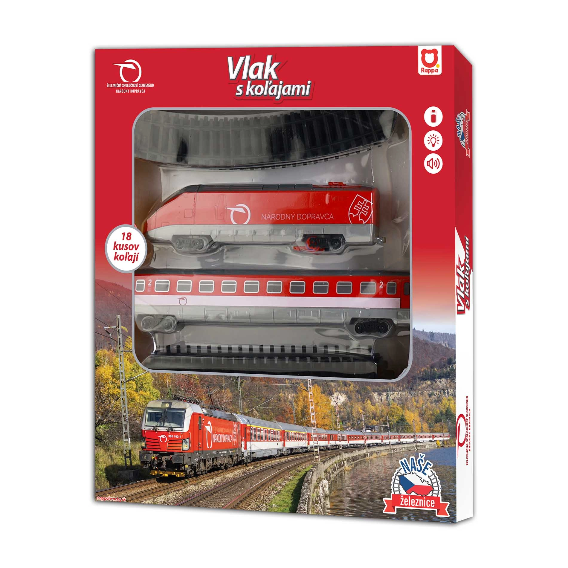 El set de tren Železničná Spoločnosť Slovensko es un regalo ideal para todos los amantes del ferrocarril y pequeños ingenieros. El set incluye una locomotora, un vagón y un conjunto de vías que se pueden montar fácilmente en una maqueta de hasta 147 x 121 cm, ofreciendo una experiencia de conducción realista y emocionante.