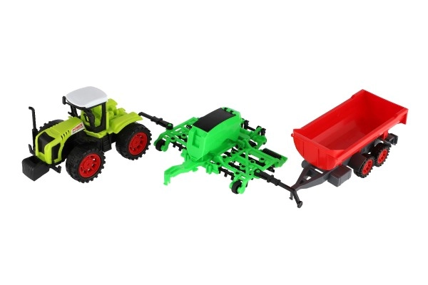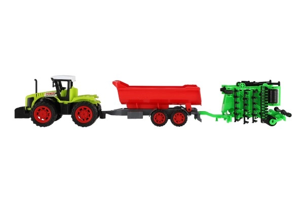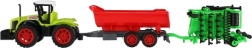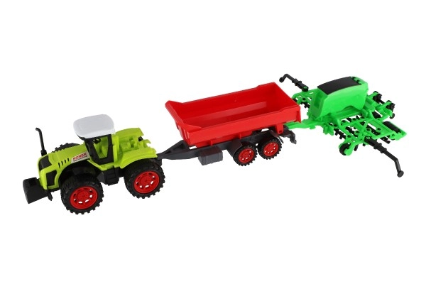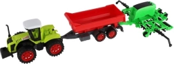Con un tractor de color verde intenso y un remolque y puertas en rojo contrastante, el juguete atrae a los niños y estimula su creatividad.