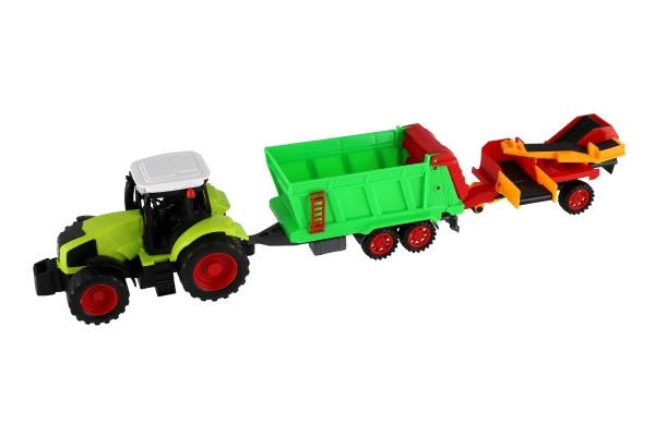 Este tractor de inercia con remolque y sistema de tracción por orugas ofrece una gran diversión para todos los pequeños agricultores. Está hecho de plástico resistente, lo que garantiza una larga vida útil, y además es seguro para los niños. El paquete incluye un modelo de tractor detallado que imita fielmente la maquinaria agrícola real: