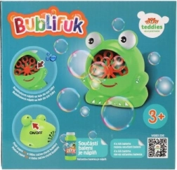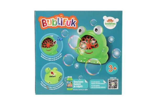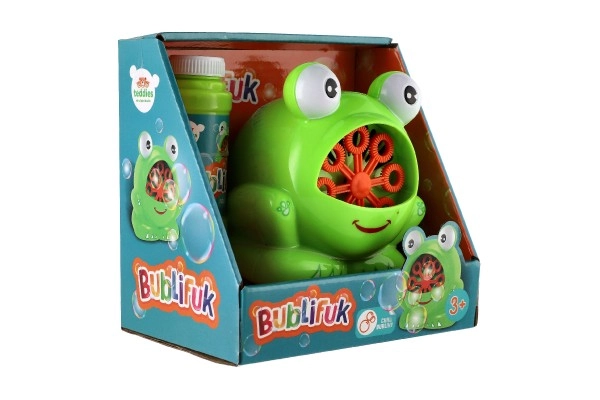 Máquina de burbujas con forma de rana es un juguete divertido para niños que crea montones de burbujas para entretener durante horas. Incluye líquido para uso inmediato.