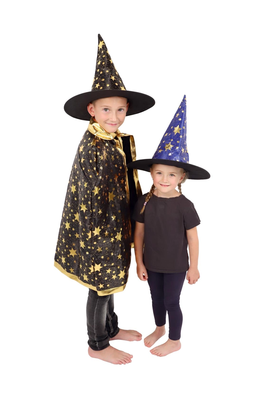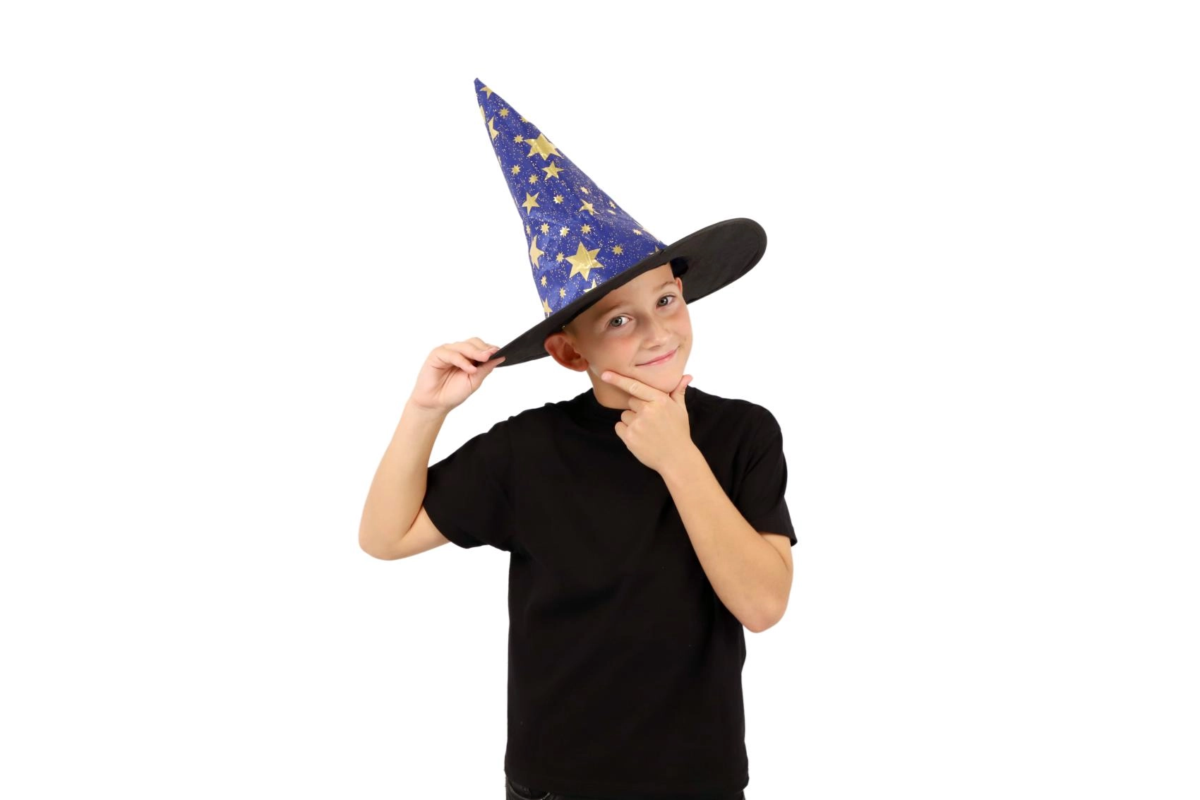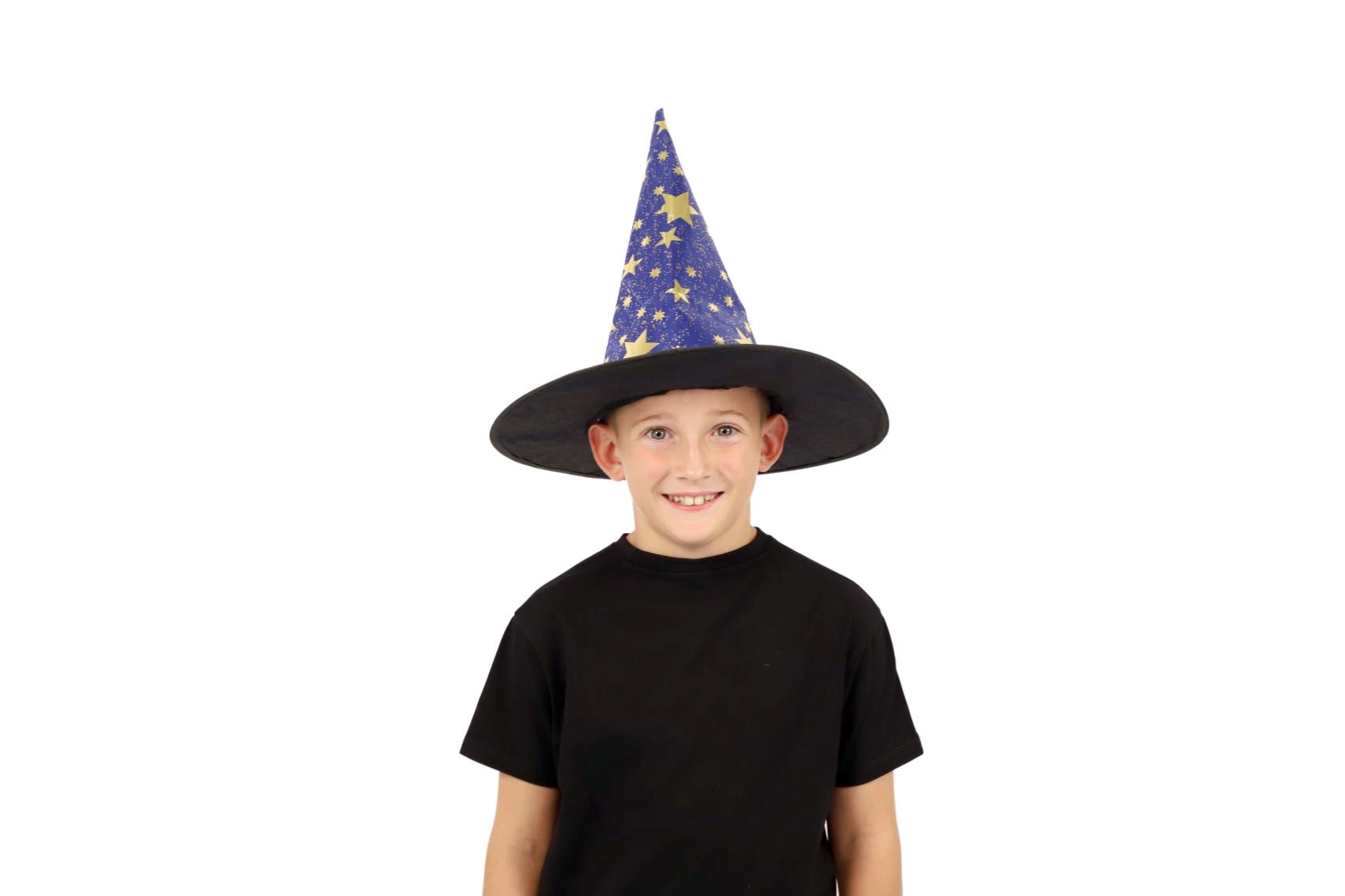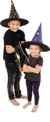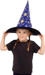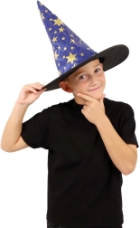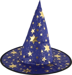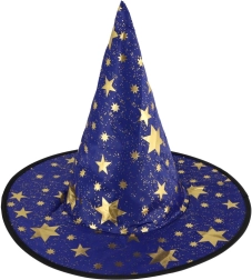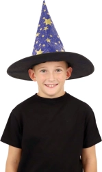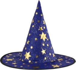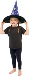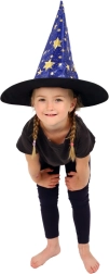 Este sombrero de bruja/mago azul‑dorado con estampado de estrellas transformará a cualquier niño en un pequeño mago. Gracias al tejido ligero, es cómodo de llevar, mantiene la forma y complementa a la perfección un disfraz para carnaval, fiestas de disfraces o representaciones teatrales.