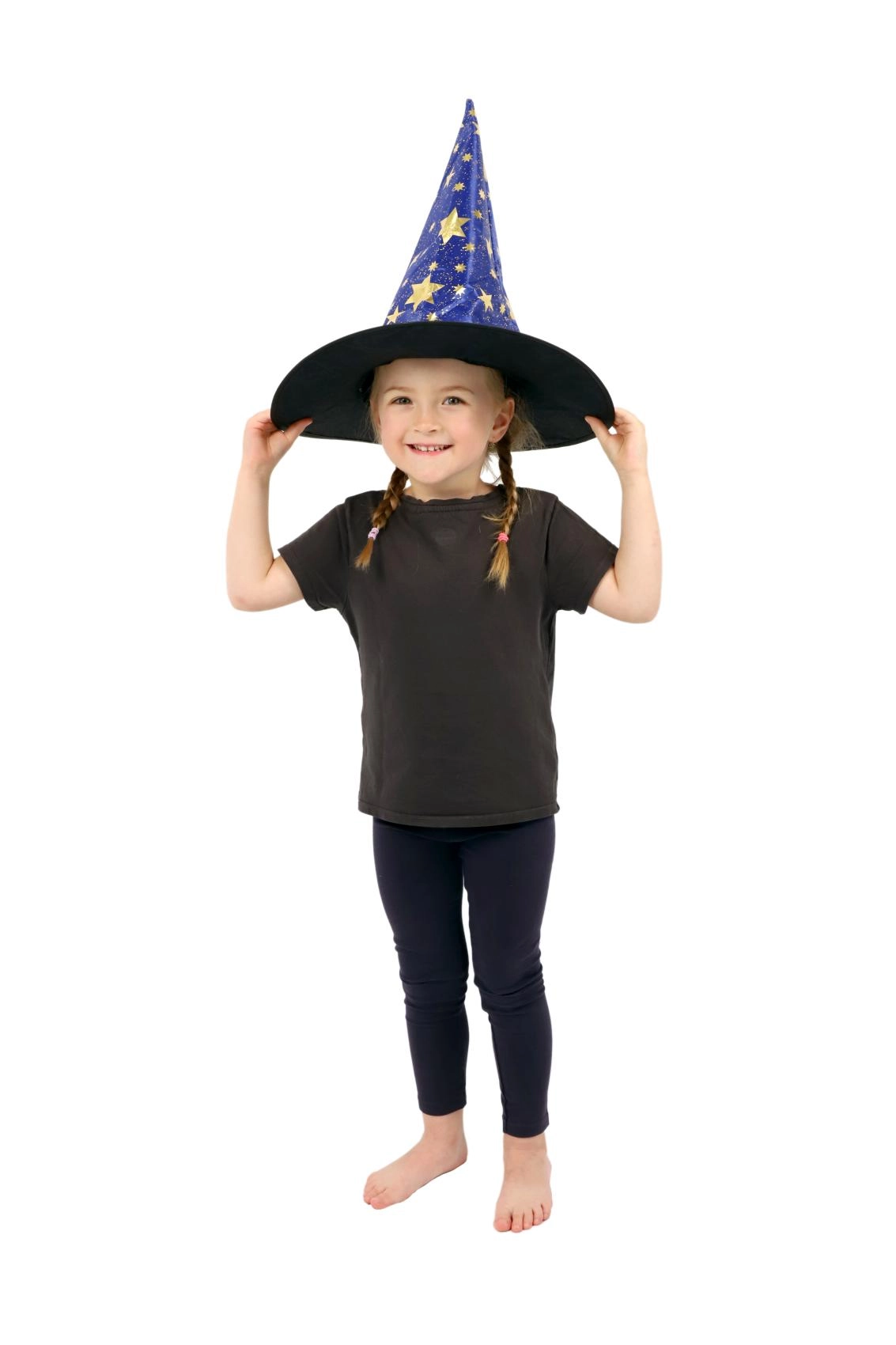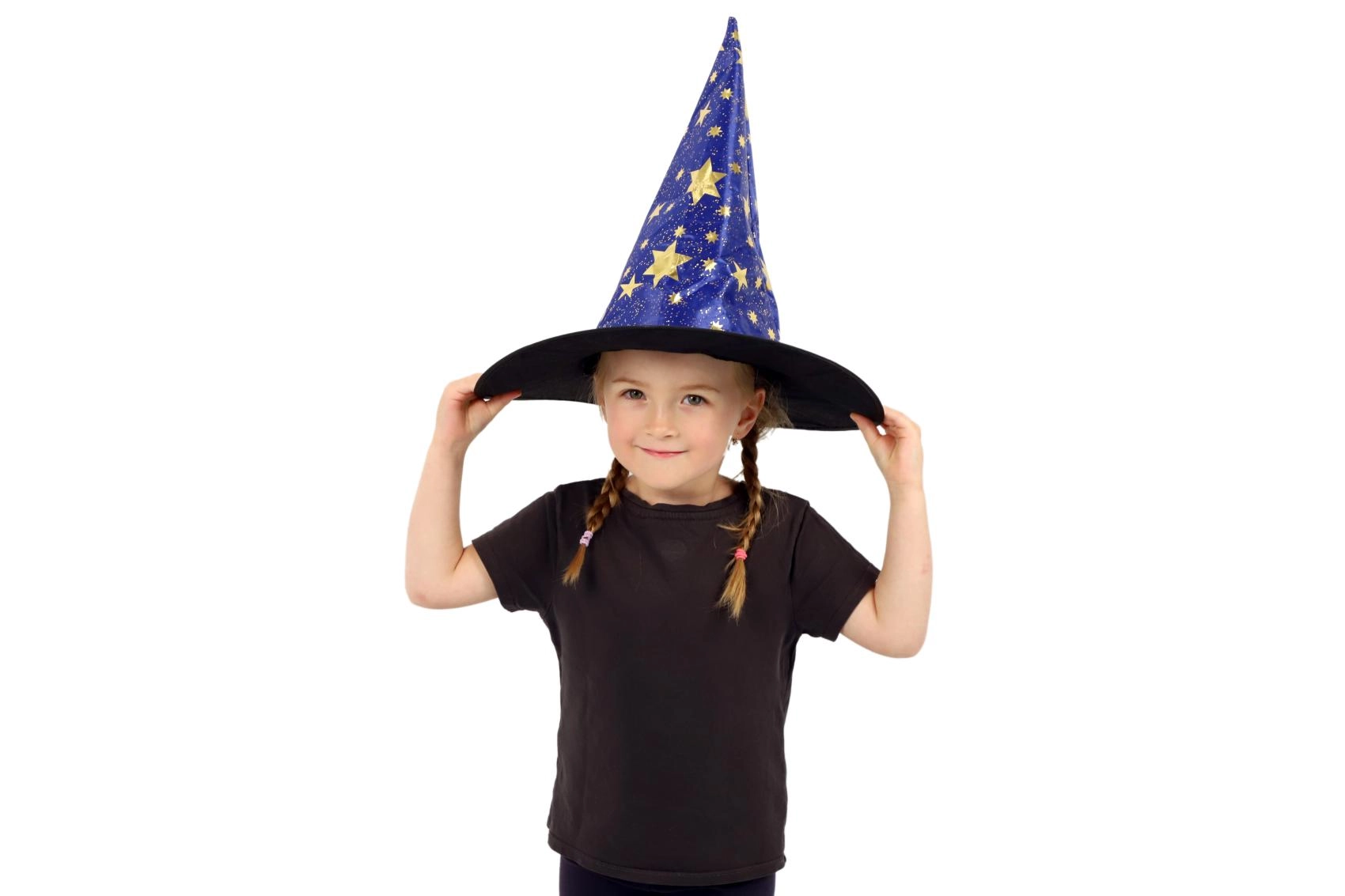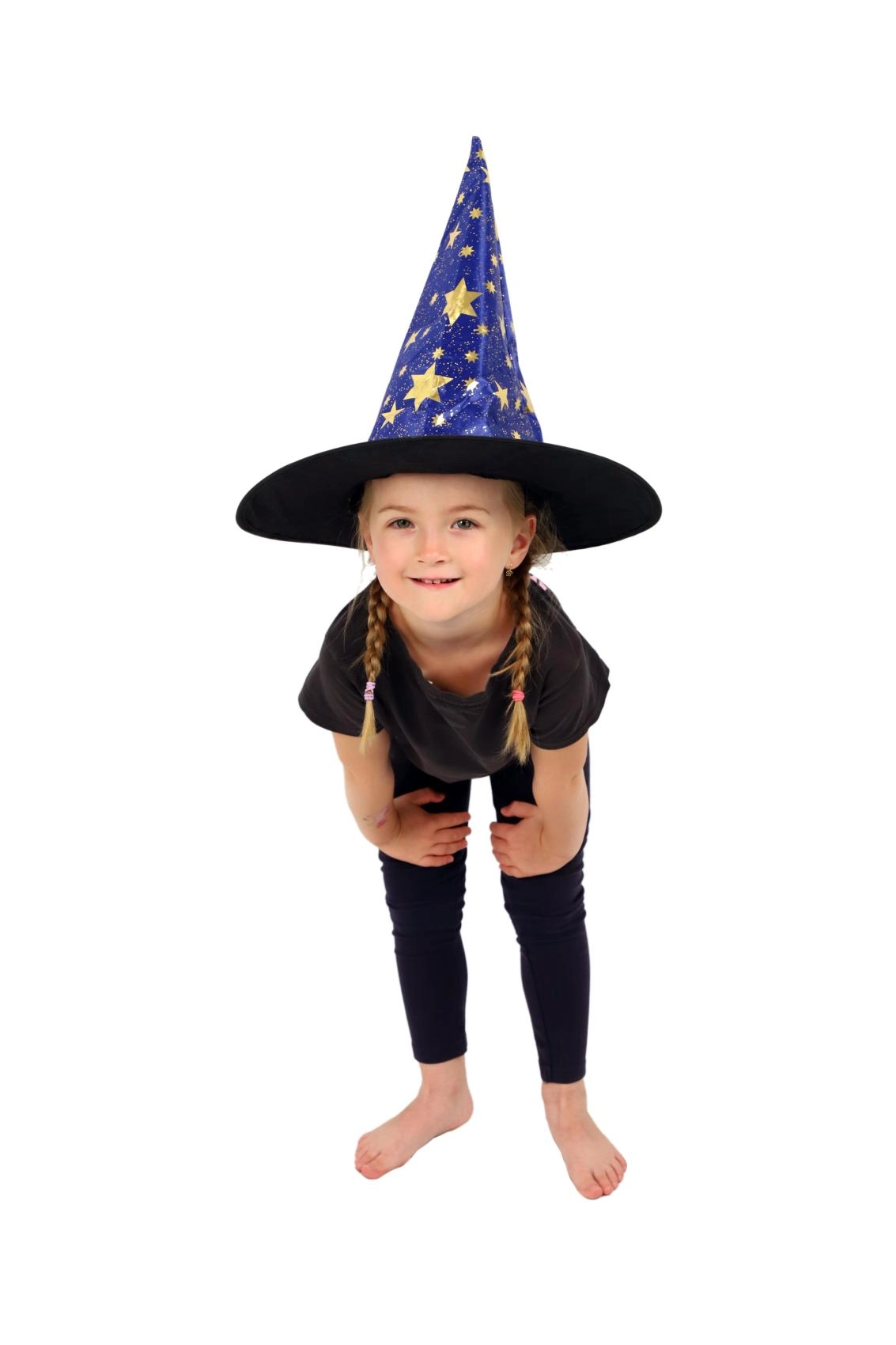 Este sombrero de bruja/mago azul‑dorado con estampado de estrellas transformará a cualquier niño en un pequeño mago. Gracias al tejido ligero, es cómodo de llevar, mantiene la forma y complementa a la perfección un disfraz para carnaval, fiestas de disfraces o representaciones teatrales.