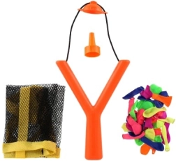 Prepárate para batallas acuáticas inolvidables con nuestro tirachinas para globos de agua. Con este set siempre tendrás a mano 36 globos multicolores, que puedes llenar con agua gracias al práctico adaptador para grifo. La bolsa de malla portátil garantiza que puedas llevar los globos contigo dondequiera que estés al aire libre.