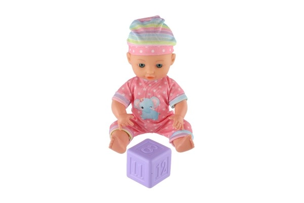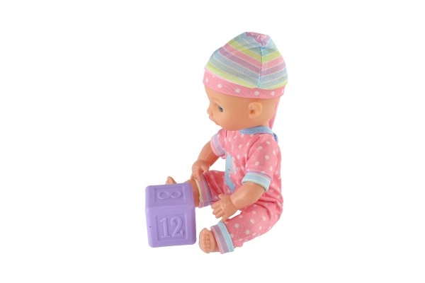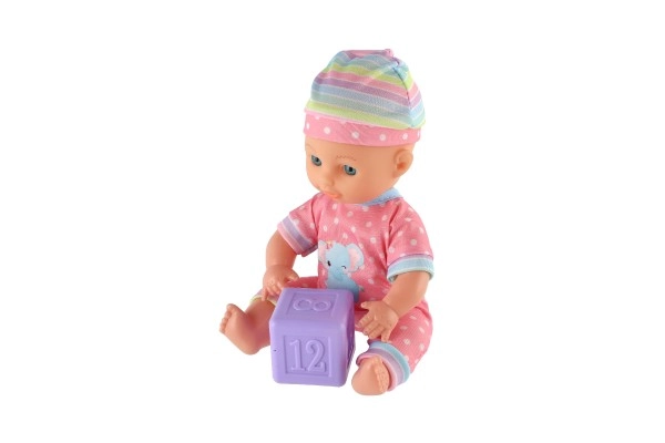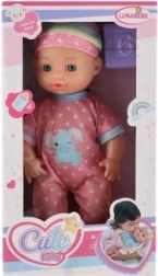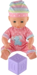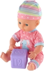 Esta encantadora muñeca bebé con cuerpo rígido es una gran compañera para el juego diario. Gracias a su tamaño compacto de 25 cm, los niños la sostienen fácilmente y cabe sin problema en cochecitos y cunas de juguete. El paquete incluye un dado de juego que aporta variedad y apoya el aprendizaje de números y colores.