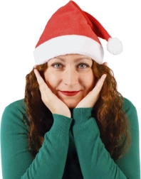 El intenso color rojo, el borde blanco esponjoso y la borla crean un look icónico que evoca el auténtico ambiente navideño.