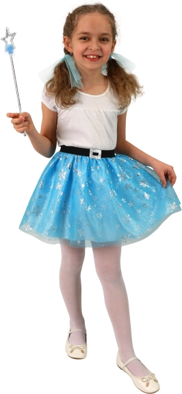 Esta encantadora falda tutú infantil convierte a cualquier niña en una verdadera princesa de invierno. El tul ligero y esponjoso en tono azul se complementa con copos brillantes que reflejan la luz de forma preciosa. Gracias a la cintura elástica, la falda se pone fácilmente y es cómoda para llevar durante todo el día.