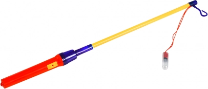 Práctica varilla de plástico con luz LED de 50 cm de longitud, ideal como accesorio para desfiles de faroles y fiestas infantiles. Al accionar el interruptor se enciende y proporciona una iluminación segura y llamativa. Alimentación con 2× pilas AA (no incluidas).