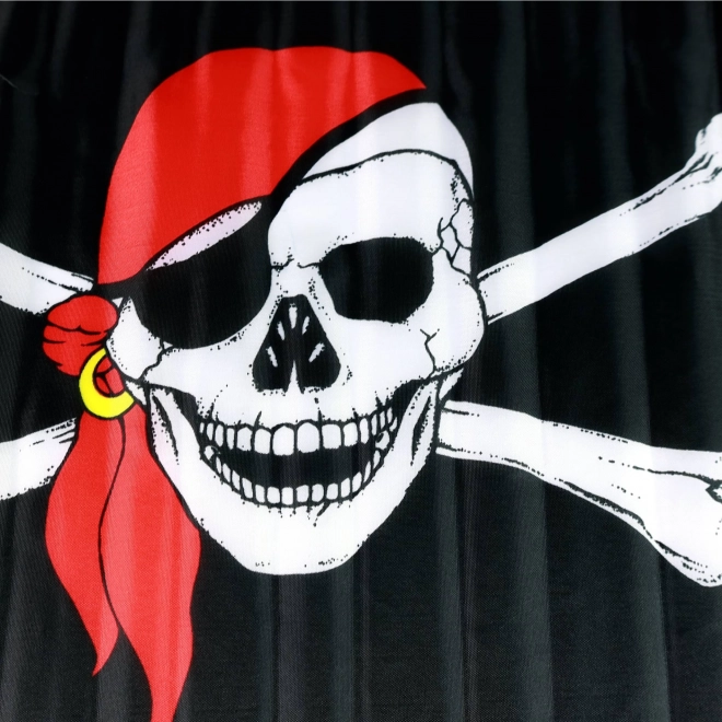 Estilosa bandera pirata con el icónico motivo de calavera y huesos cruzados, ideal como decoración para carnavales, fiestas infantiles y eventos temáticos. Ofrece un tamaño de 47 × 30 cm y está montada en una asta de madera de 62 cm para facilitar el ondeo y la exhibición. Apta para niños a partir de 3 años.