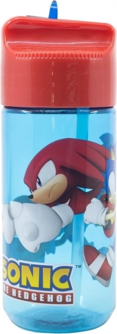 La botella está impresa con personajes populares de la serie Sonic the Hedgehog, ideal para fans de todas las edades.