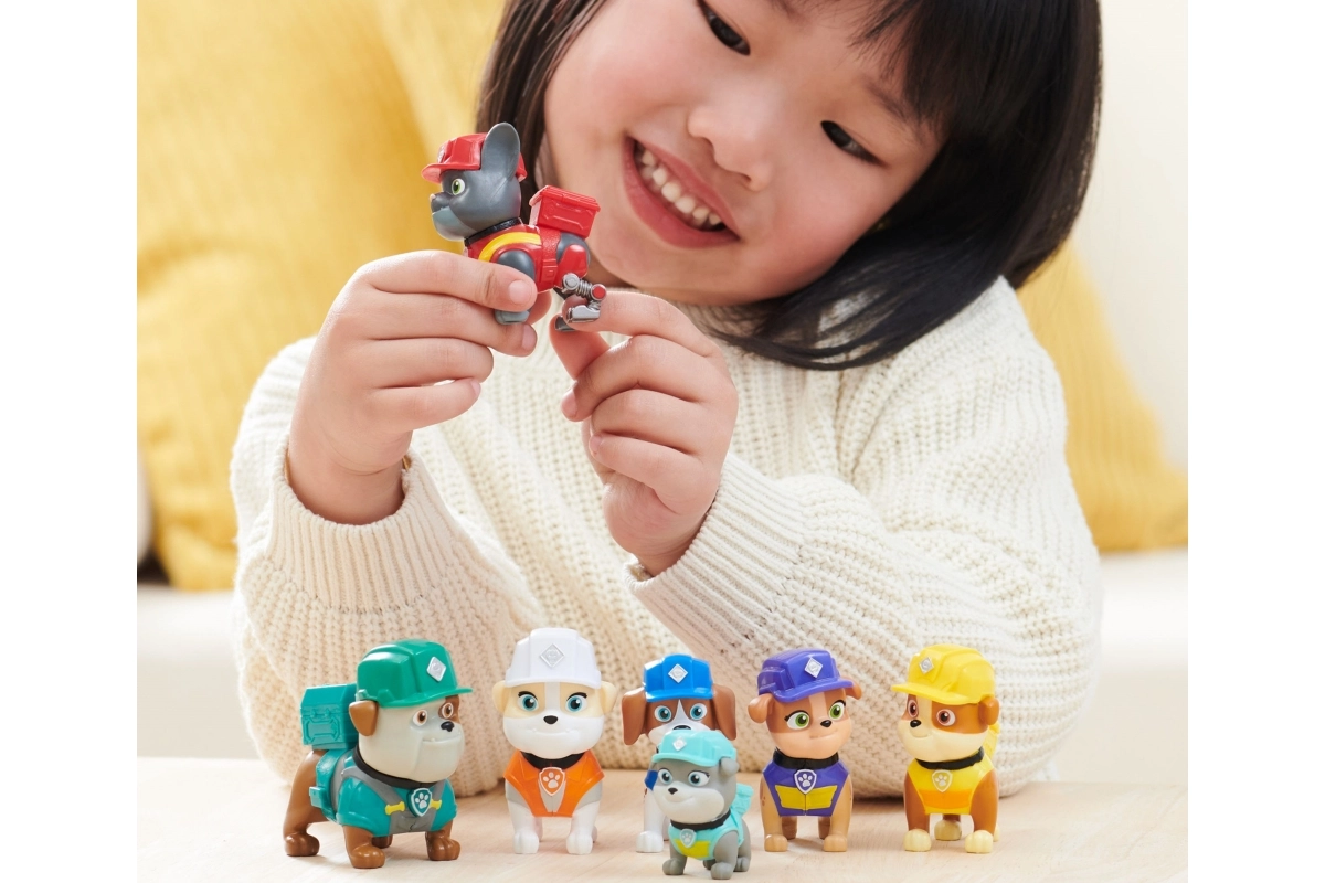 Cada figura cuenta con equipamiento de construcción auténtico, casco e insignia, para que el juego sea fiel a las escenas de PAW Patrol: Rubble y su equipo.