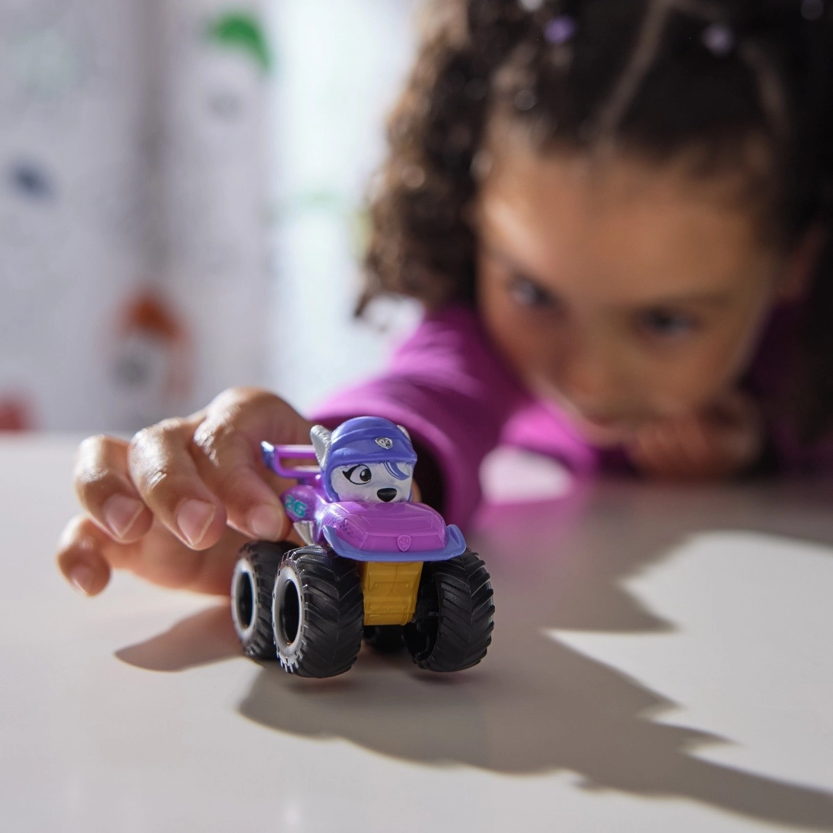 Descubre el set completo de héroes de PAW PATROL con los resistentes mini coches de carreras Pup Squad. Cada cachorro luce su atuendo auténtico de “Ruedas Grandes” y, gracias a su diseño aerodinámico, parece correr a toda velocidad, igual que en la gran pantalla. El tamaño ideal para la mano, el suave giro libre de las ruedas y la fabricación duradera prometen horas de diversión en casa y de viaje.