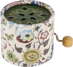 Una encantadora caja de música con manivela y diseño floral que alegrará a niños y adultos. Al girar la manivela emite una melodía suave que calma a los pequeños y aporta alegría musical. Sus dimensiones compactas, el resistente cuerpo de metal y el decorativo aspecto floral la convierten en un bonito regalo y en una pieza decorativa con estilo.