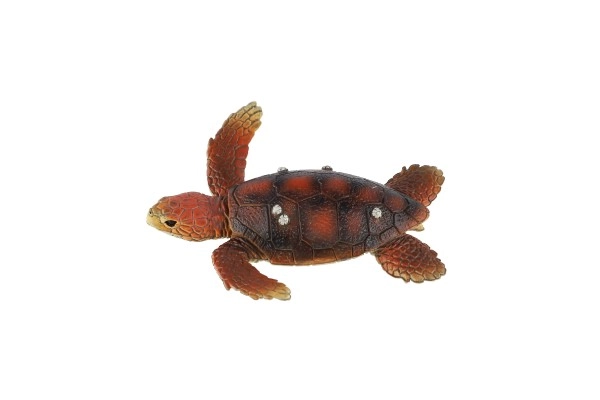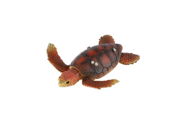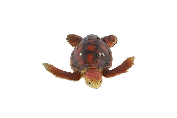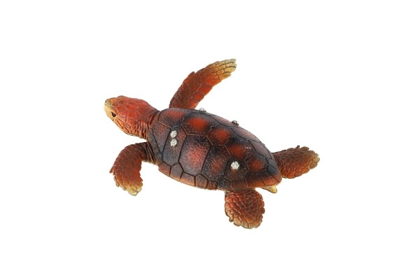 Esta figura de plástico de tortuga boba es altamente realista, con texturas convincentes y colores naturales.