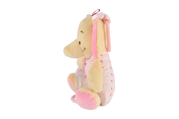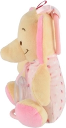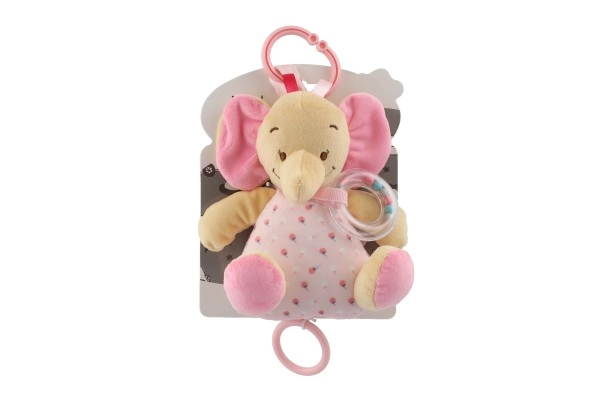 El juguete está fabricado con material suave de alta calidad y elementos de plástico que garantizan durabilidad y fácil limpieza. El mecanismo musical no requiere pilas, por lo que su uso es sencillo y seguro incluso para los más pequeños.