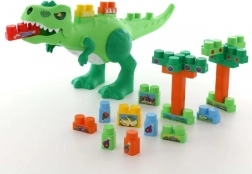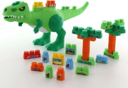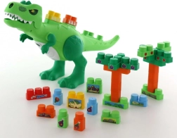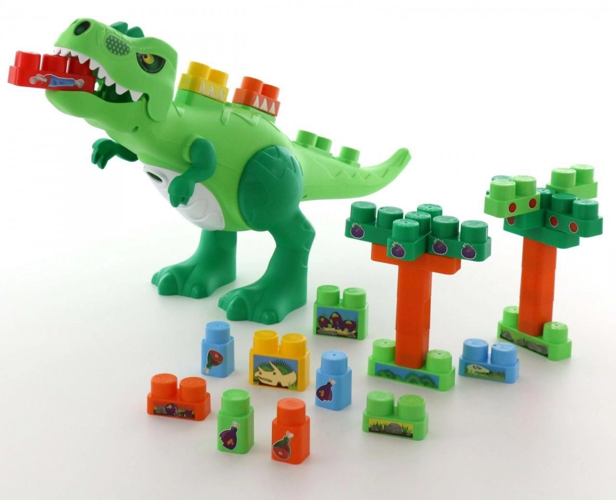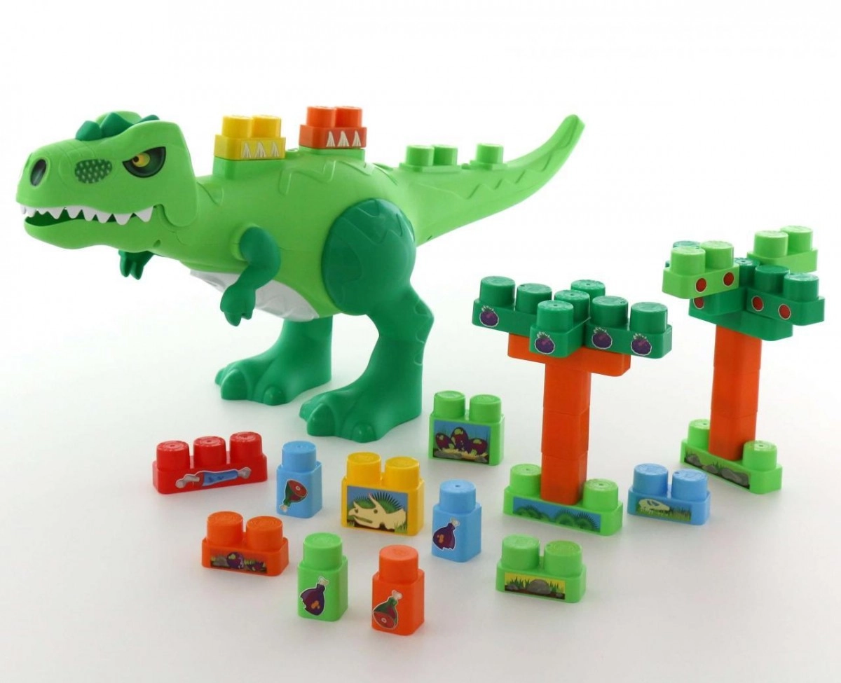 En el lomo y la cola del dinosaurio hay puntos para fijar las piezas, por lo que el niño puede diseñar por sí mismo cómo se ve el dinosaurio. La fácil extracción de las piezas desde la parte inferior permite crear un nuevo entorno para el dinosaurio.