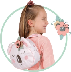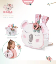 ¿Buscas la primera mochila para tu peque que sea bonita y práctica? Esta mochila rosa y blanca con motivo de koala dormida con una flor tiene un tamaño compacto, superficie textil agradable y cierre con cremallera fácil de usar. Gracias a las correas de hombro ajustables, ofrece un uso cómodo para niños a partir de 3 años.