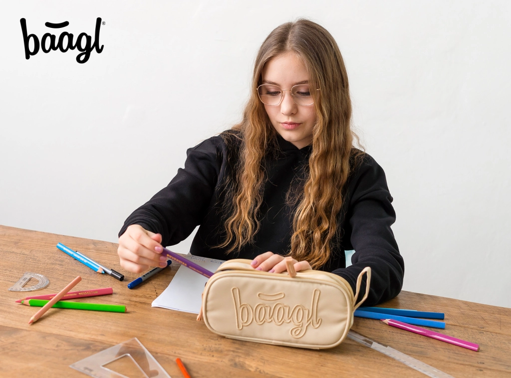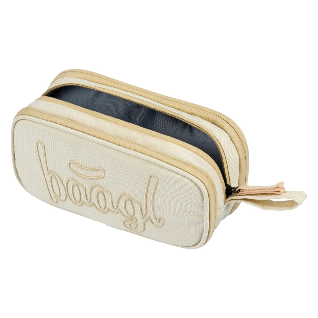 El estuche escolar de la marca BAAGL combina estética y funcionalidad. Este estuche destaca no solo por su elegante diseño beige, sino también por su material resistente y de calidad, que garantiza una larga vida útil del producto.