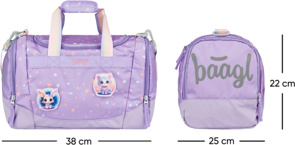 La ligera y elegante bolsa deportiva infantil Baagl Mascotitas es ideal para actividades extraescolares, escapadas cortas e incluso como equipaje de mano. Ofrece una amplia cámara principal con tapa ancha, bolsillo independiente para calzado, correa desmontable y ajustable y fondo reforzado e impermeable. El cierre es fluido gracias a las fiables cremalleras YKK y para una mejor visibilidad incluye elementos reflectantes.