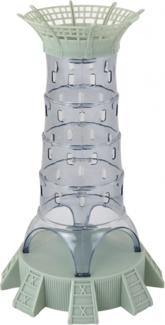 Una torre de plástico estable con orificios para insertar palitos amarillos, rojos y verdes constituye el núcleo del juego. Cada extracción cambia la estructura y aporta emoción.