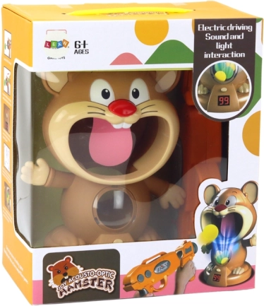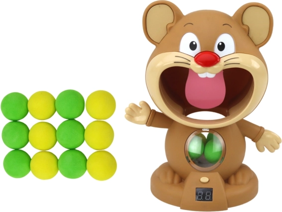 Convierte el tiempo libre en diversión llena de acción para toda la familia. El objetivo es acertar con las bolas suaves en la boquita del hámster: cada impacto preciso se confirma con un sonido y la puntuación aparece en la pantalla LCD integrada. Activa el modo móvil y deja que el hámster se desplace por la superficie: acertar al objetivo será más difícil, pero también mucho más divertido.